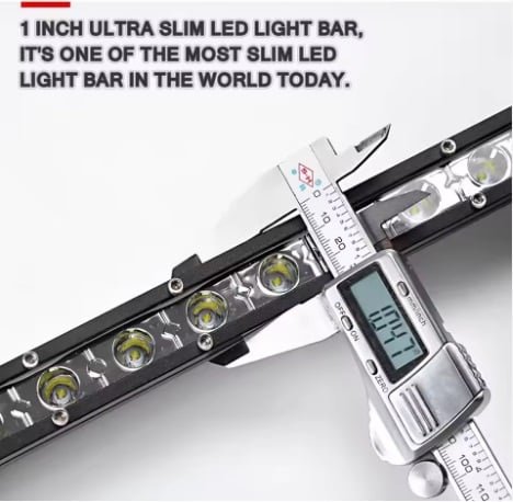 Barra LED Super Slim neblinera para una mejor y más cómoda conducción en el carretero durante la noche y la neblina. Sólo 2.5cm de altura, 90w, IP67, 12 voltios, 79cm, Color 3000K, 9000 lumens. Incluye brackets. No incluye instalación.
